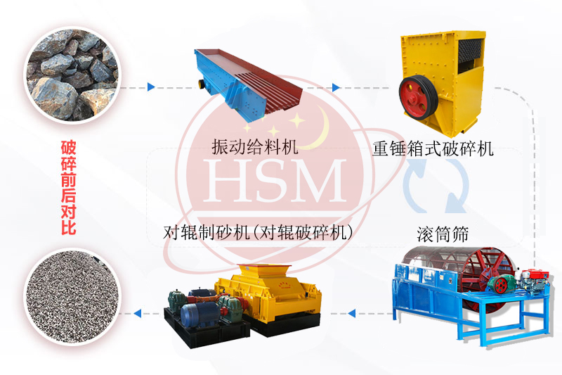 時產(chǎn)100噸對輥破碎機生產(chǎn)線制砂生產(chǎn)流程